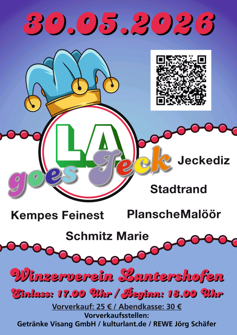 Am 30. Mai 2026 wird der Winzerverein Lantershofen zur Bühne für eine große Sommer-Karnevalsparty! Freut euch auf ein mitreißendes Fest voller Musik, guter Laune und unvergesslicher Momente.